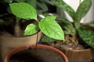 На дно горшка (предварительно обеззараженного марганцовкой) насыпьте слой дренажа. Это может быть керамзит или мелкая морская галька. Важный момент: на дне емкости должны быть отверстия. Косточку заглубляйте не более, чем на 2 см. Сверху накройте горшок прозрачным целлофаном и отправьте в теплое место. Время от времени увлажняйте и проветривайте грунт. Спустя 2 недели появятся ростки. С этих пор укрытие можно убрать.